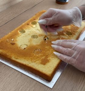 Déposez le gâteau dans sa boîte et conservez-le au frais.