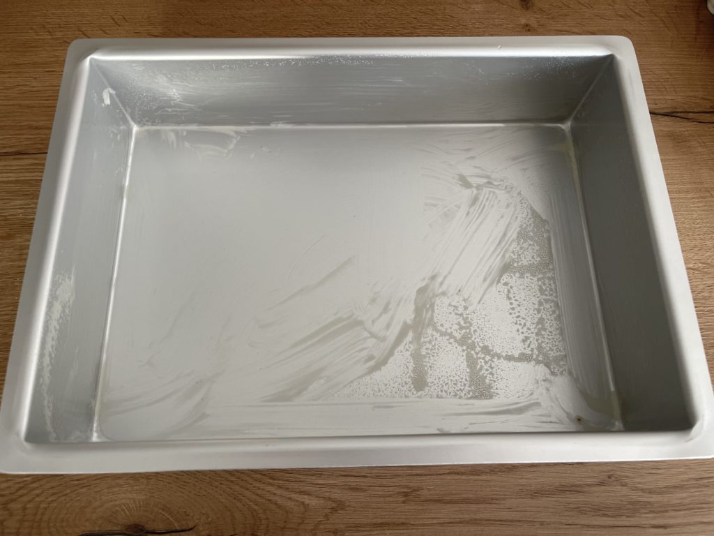 4. Graissez le moule (vous pouvez utiliser le spray de démoulage) et versez-y la préparation.