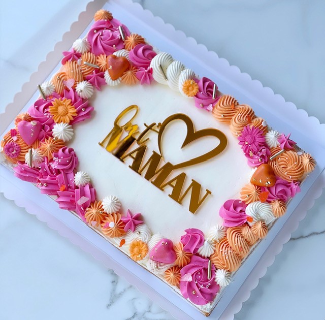 Le sheet cake est déclinable à l’infini: pour un anniversaire, un baptême, une baby shower…